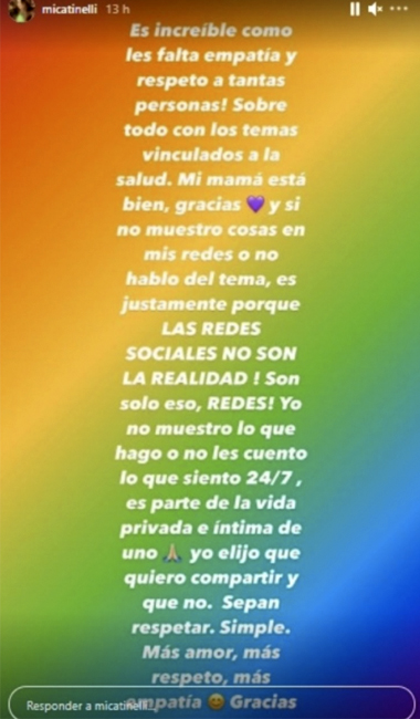 ¿qué me dabas mamá? la abuela materna de micaela y candelaria tinelli falleció ayer.